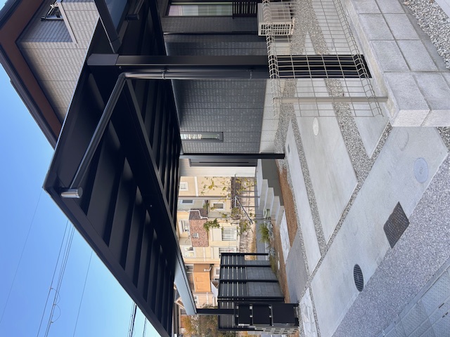 シャープで伸びやかな屋根のラインが外構全体をすっきりと見せ、毎日の動線にも快適さをもたらします。