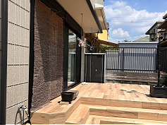 今回の工事では、既存のタイルデッキを活かしてテラス囲いを設置することで、暑さ・天候・視線への対策をしながら、庭時間を日常の居場所として取り込みました。