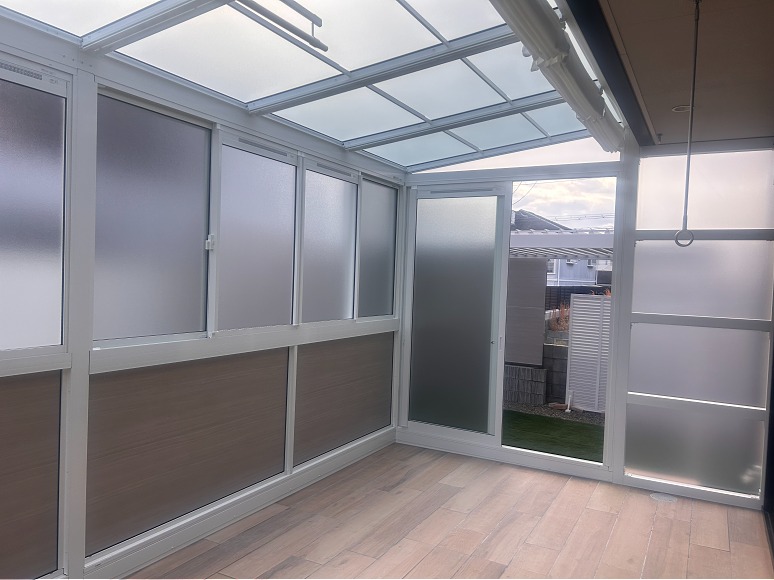 奈良市M様邸 テラス囲いで洗濯もくつろぎ時間も快適に! 視線を気にせず過ごせる憩いの戸外室